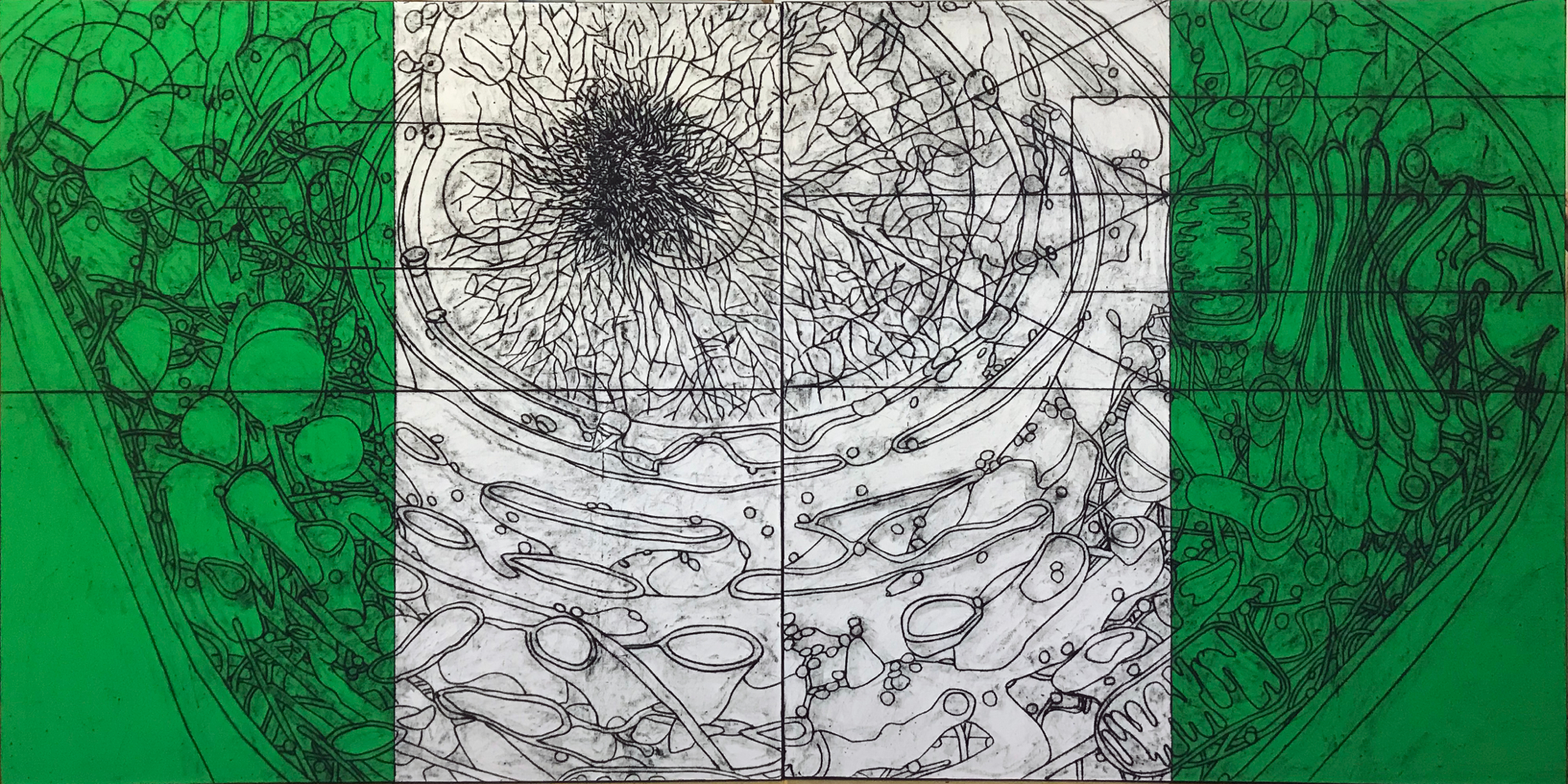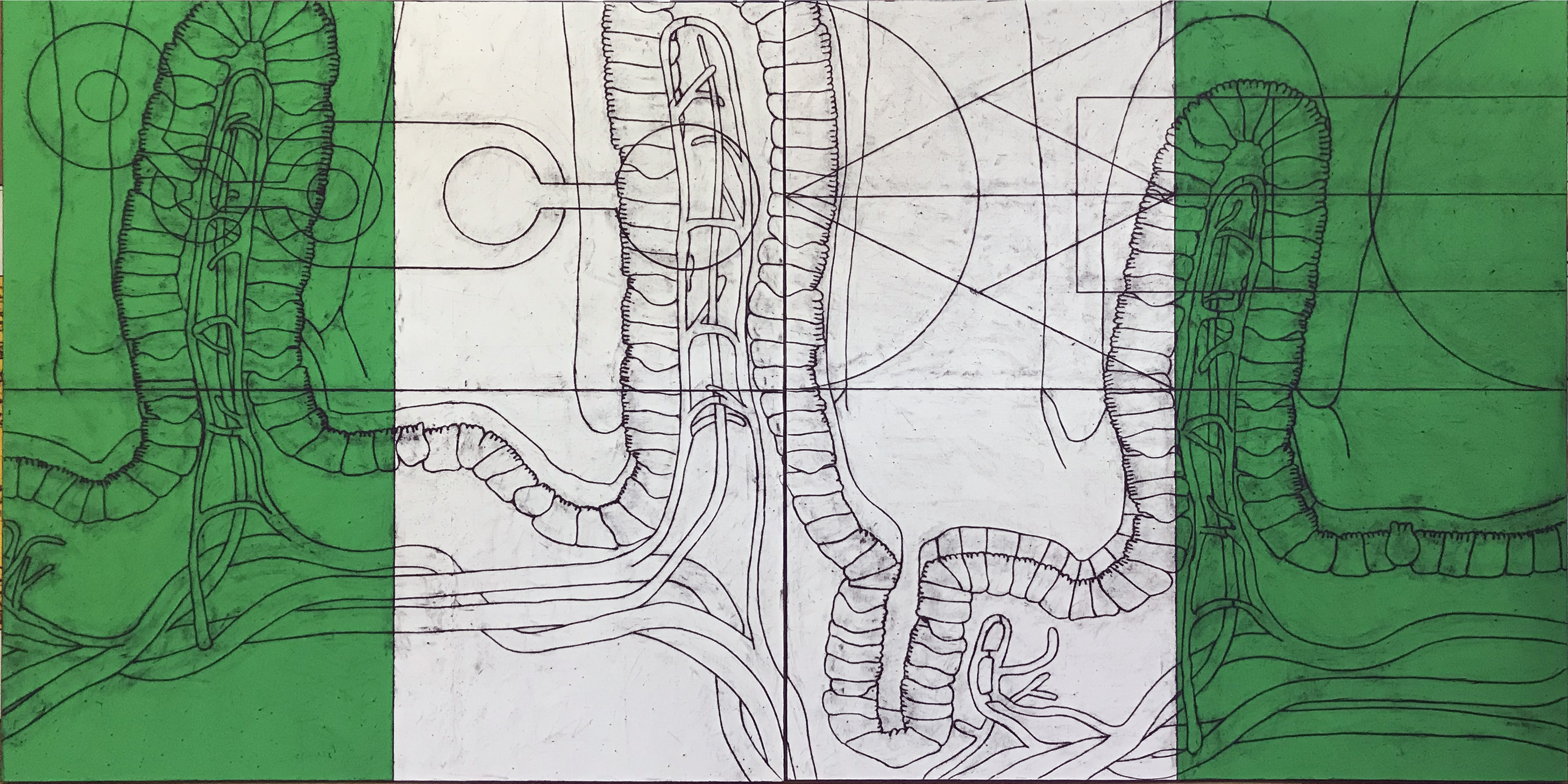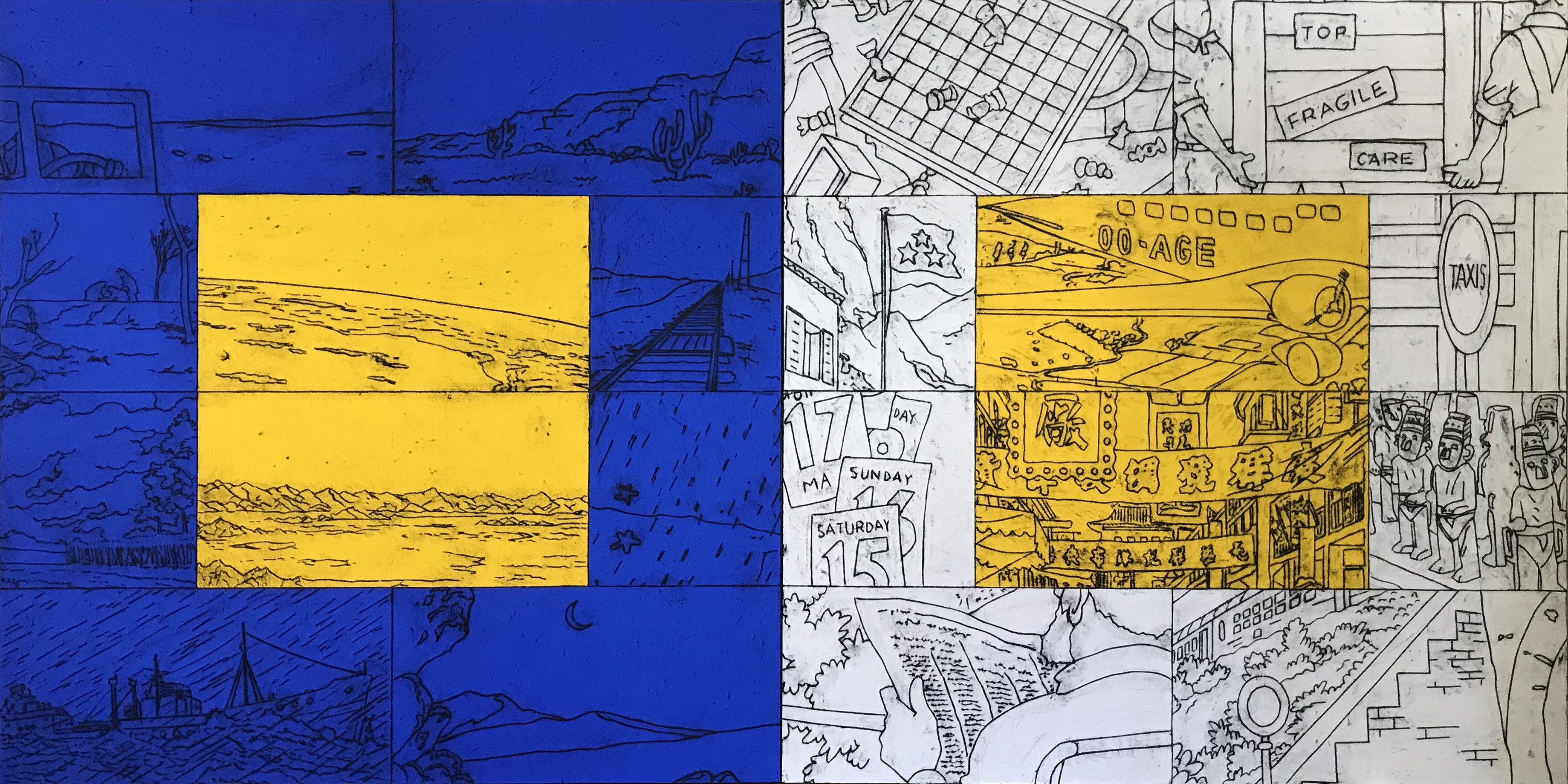 oil stick rubbing and gouache on canvas