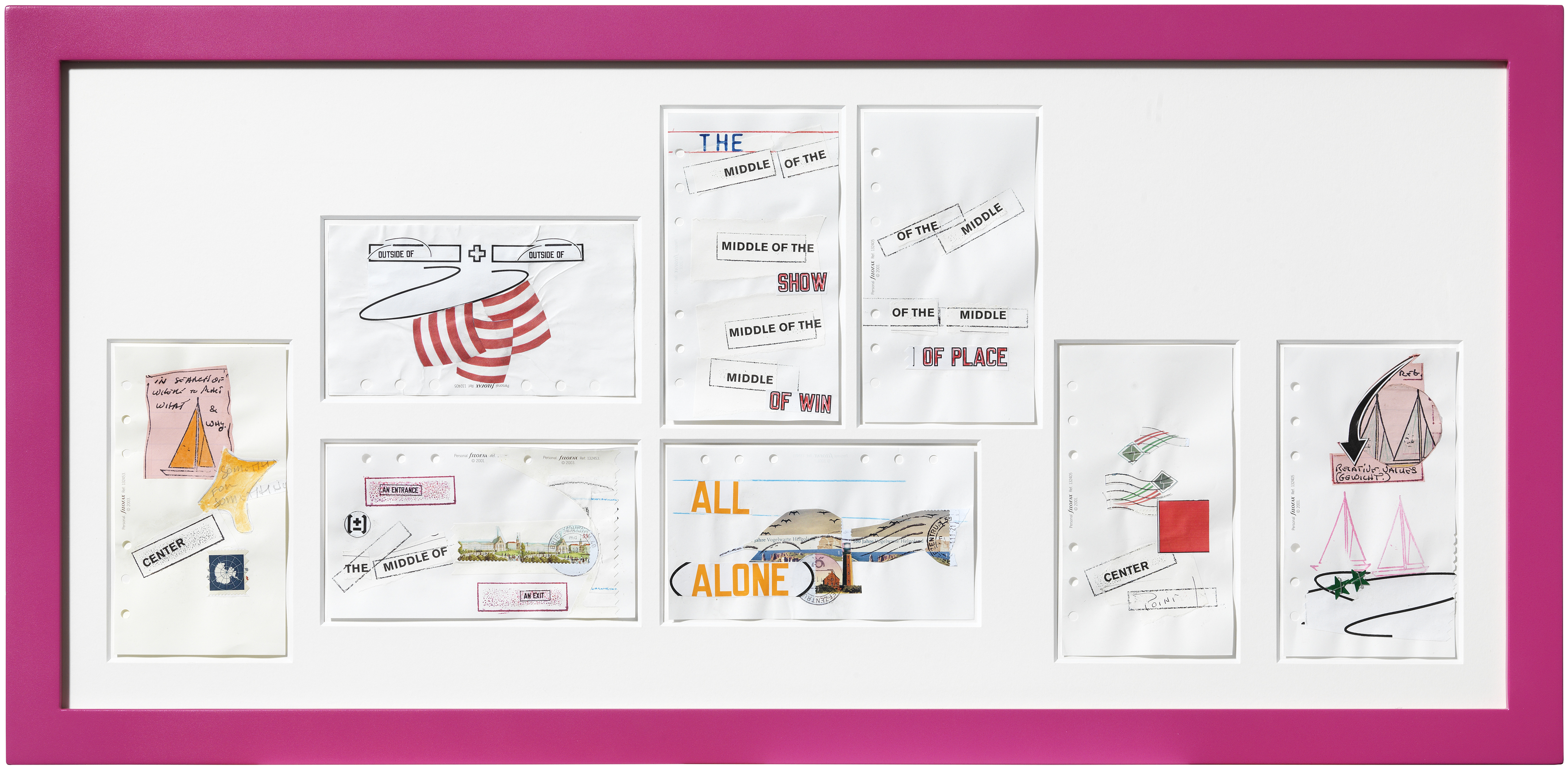 The model of perception that Mullican calls the theory of the five worlds serves him as a system of order for his method of working as an artist. It illustrates the relationship between the world and its representation. The artist is particularly interested in how we charge symbols and systems of symbols with meaning. —Nikolaus Bischoff