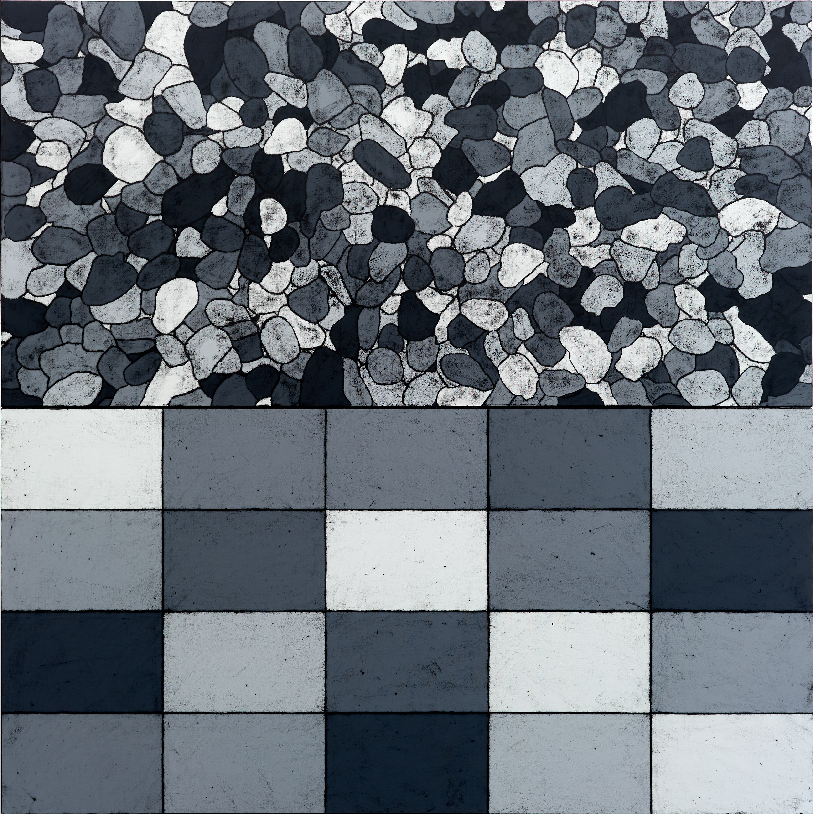 oilstick, acrylic on canvas, rubbing