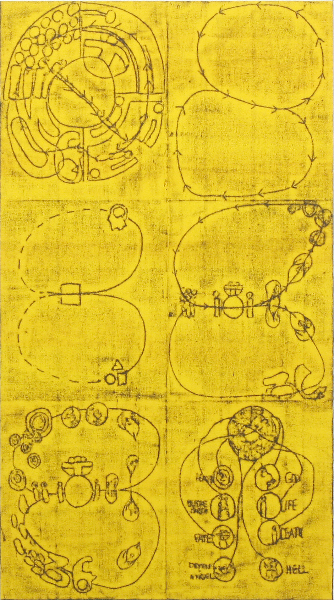 Matt Mullican works in the media of painting, drawing, sculpture and photography as well as video, installation and performance art. In the late 1970s, he was intensely engaged in performances under hypnosis. Then, in the 1980s, he focused his main interest on developing a complex system of signs and symbols. The resulting cosmologically based model remains central to his work.
